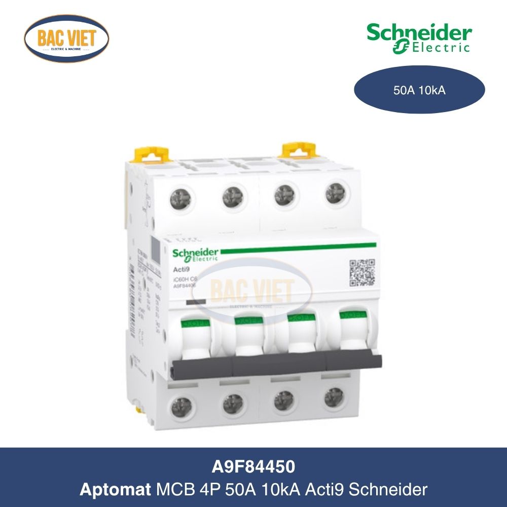 Aptomat MCB 4P 50A 16kA A9F84450 Schneider là một thiết bị đóng cắt tự động thuộc thương hiệu Schneider, dùng để bảo vệ mạch điện khỏi các tình trạng quá tải và ngắn mạch.