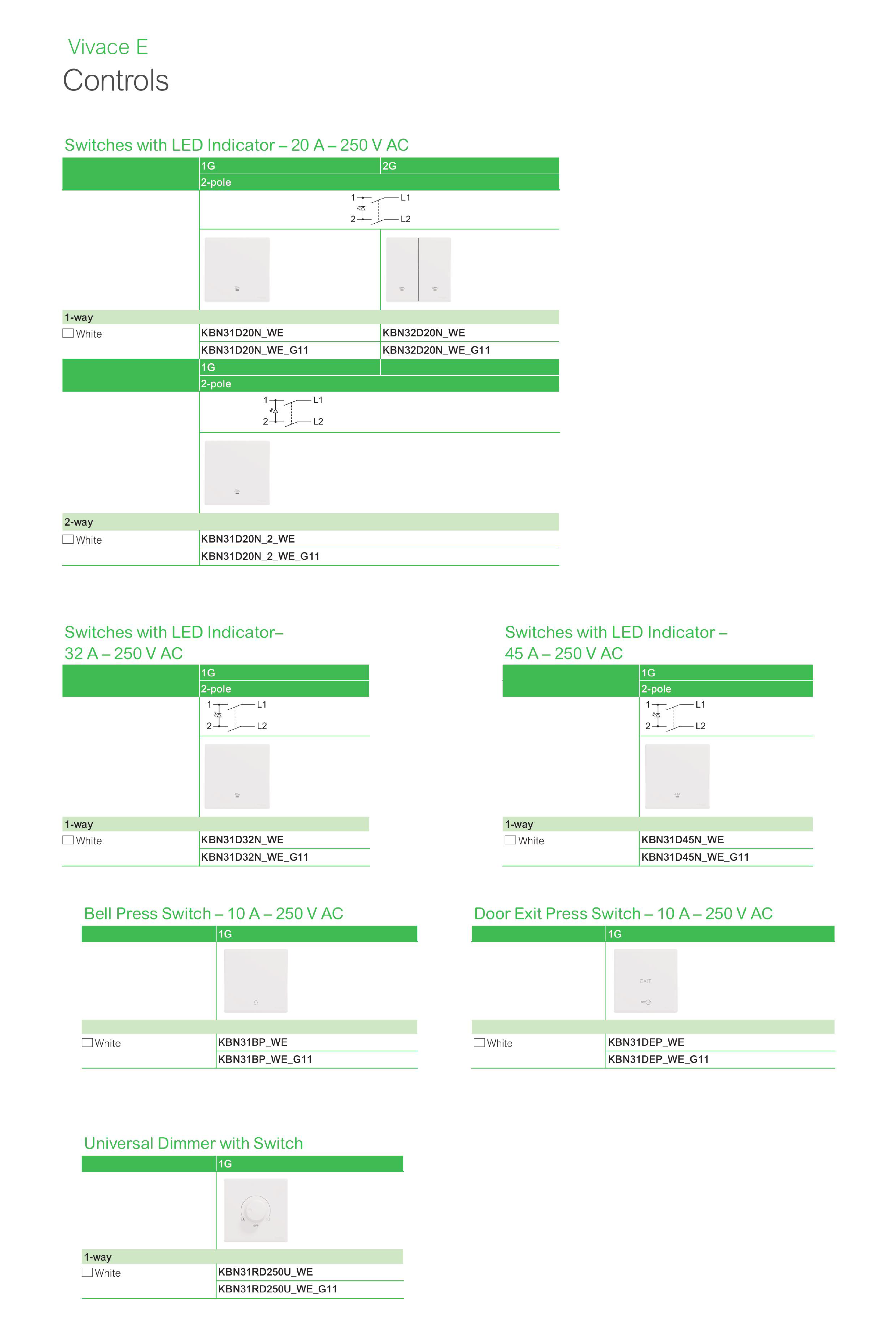Tính năng | Cơ bản, đầy đủ | Nhiều tuỳ chọn hơn (có đèn báo, công tắc có ổ cắm tích hợp…) |
