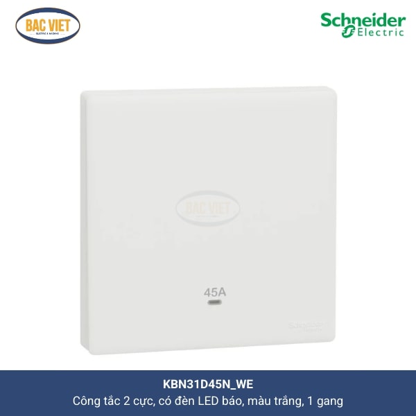 Công tắc 2 cực có đèn LED báo, màu trắng Vivace E 45A 250V KBN31D45N_WE Schneider là sản phẩm mới nhất của thương hiệu Schneider với dòng Vivace E. Và Cơ điện Bắc Việt được làm nhà phân phối số 1 của dòng sản phẩm Vivace E Schneider.