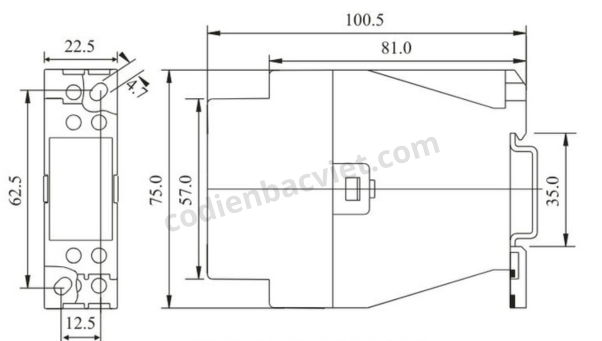 | Kích thước (mm) | 22.5 x 75 x 100.5 |