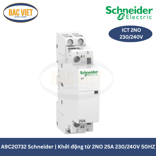 Contactor Schneider A9C20732 thuộc dòng Acti9 iCT, là thiết bị chuyên dùng để đóng/ngắt tải điện thông qua tín hiệu điều khiển. Với dòng định mức 25A, tiếp điểm 1NO và cuộn hút 230V AC, sản phẩm phù hợp cho nhiều hệ thống điện dân dụng và thương mại cần vận hành tự động hoặc điều khiển từ xa.
