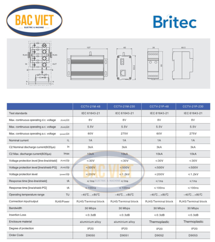 – Liên hệ ngay với Cơ Điện Bắc Việt để chúng tôi tư vấn về sản phẩm Chống sét lan truyền mạng BR-CCTV-21M-48 BRITEC với giá ưu đãi nhất.-