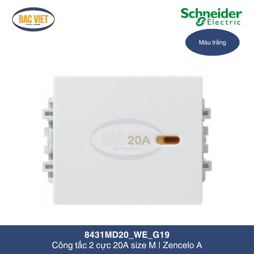 Công tắc 2 cực 20A size M 8431MD20_WE_G19 Schneider thuộc dòng Zencelo A của Schneider Electric, là thiết bị dùng để điều khiển bật/tắt một điểm chiếu sáng hoặc thiết bị điện từ một vị trí duy nhất. Với thiết kế mặt phẳng hiện đại, công nghệ full-flat, và màu trắng thanh lịch, sản phẩm mang lại sự tinh tế và sang trọng cho không gian nội thất. Công tắc sử dụng dòng định mức 16AX, phù hợp với nhiều loại tải như đèn LED, đèn huỳnh quang, quạt điện hoặc ổ cắm phụ trợ. Dòng Zencelo A nổi bật với cơ cấu nhấn mềm mại, độ bền cao và khả năng lắp đặt dễ dàng, đảm bảo an toàn điện trong quá trình sử dụng.