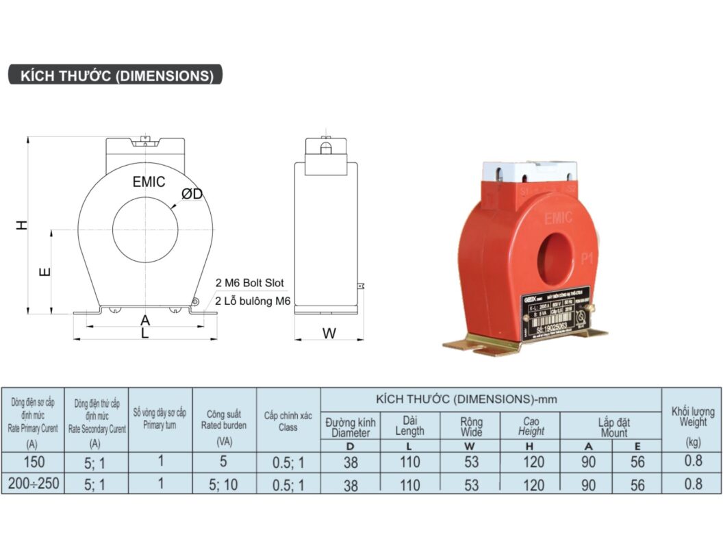 EM4H03 | Biến dòng tròn Emic 200/5A