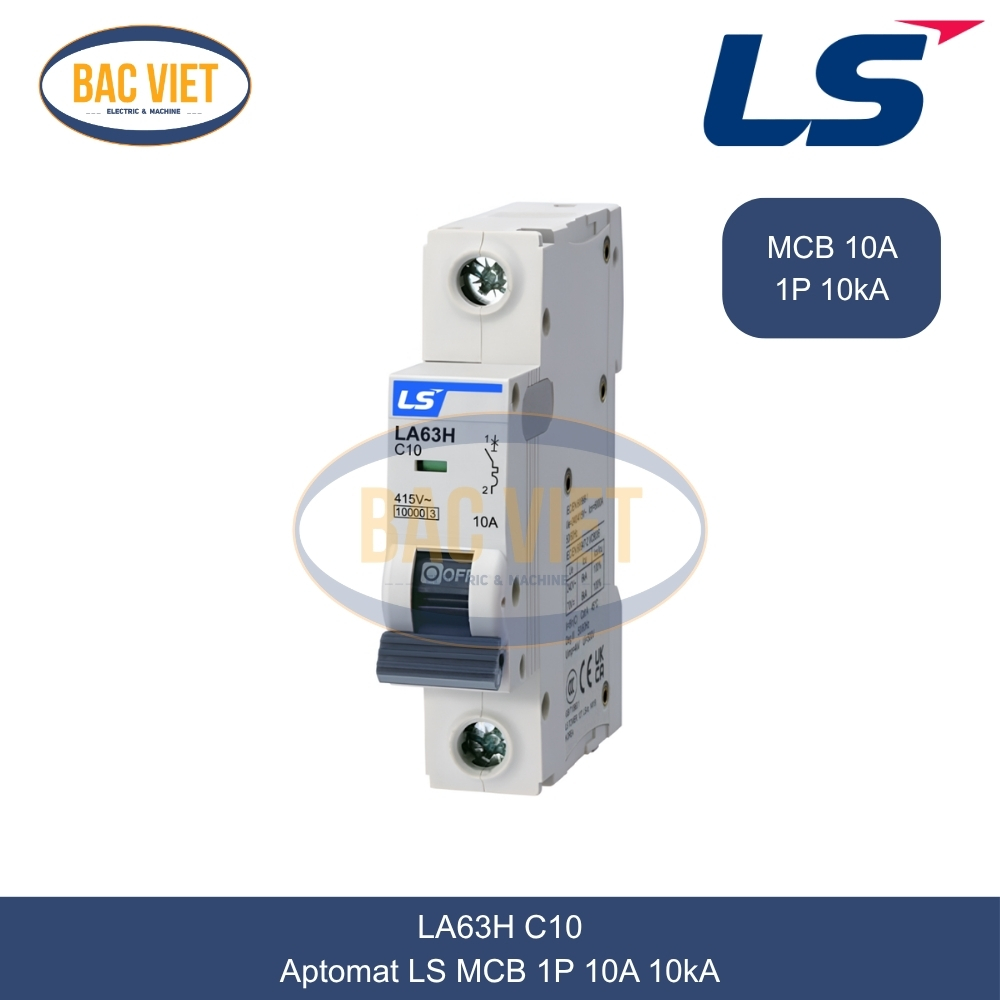 - LA63H 1P 10A là dòng cầu dao tự động (MCB) thuộc thương hiệu LS Electric, được thiết kế để bảo vệ hệ thống điện khỏi các sự cố quá tải và ngắn mạch. Đây là thiết bị quan trọng trong các hệ thống điện dân dụng và công nghiệp, giúp đảm bảo an toàn cho người sử dụng cũng như các thiết bị điện.