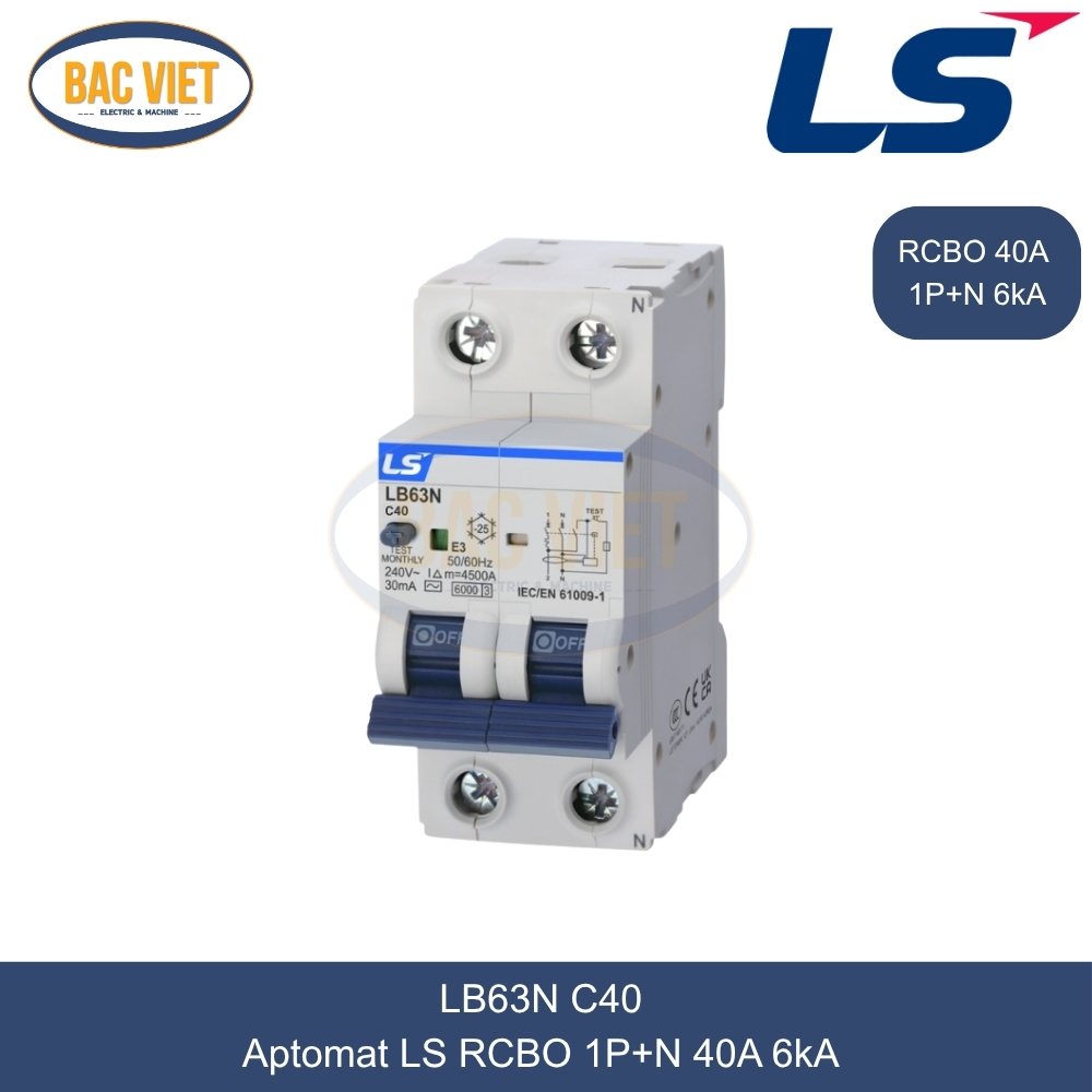 LB63N 1P+N 40A LS | Cầu dao tự động chống giật RCBO 1P+N 40A 6kA