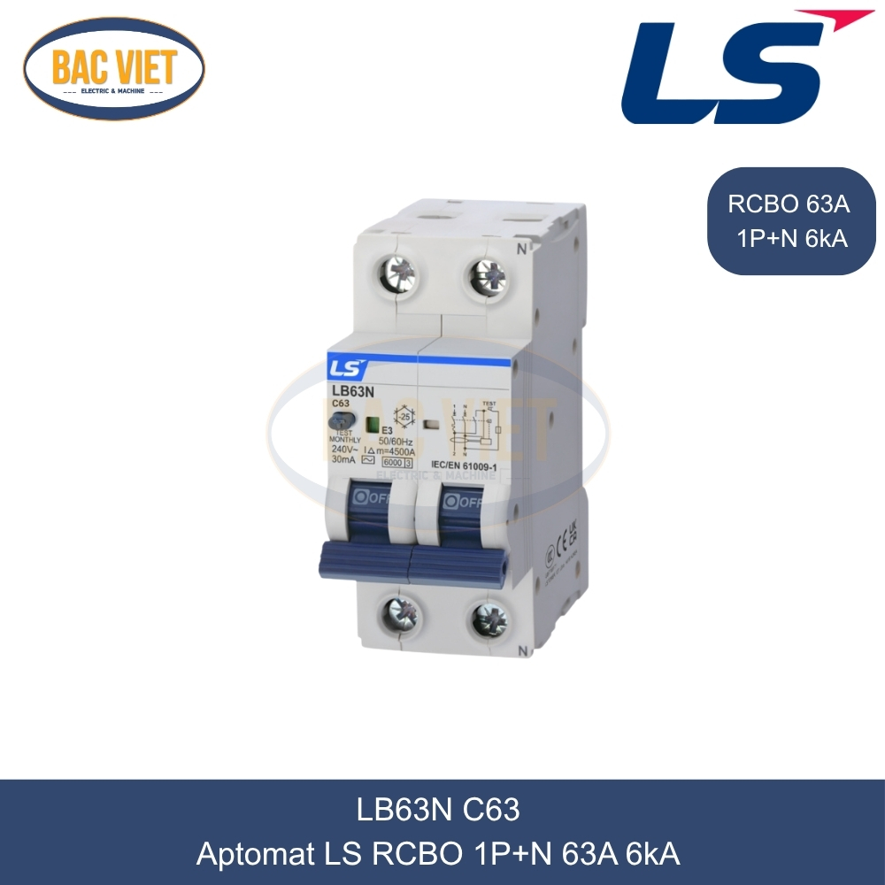 LB63N 1P+N 63A LS | Cầu dao tự động chống giật RCBO 1P+N 63A 6kA