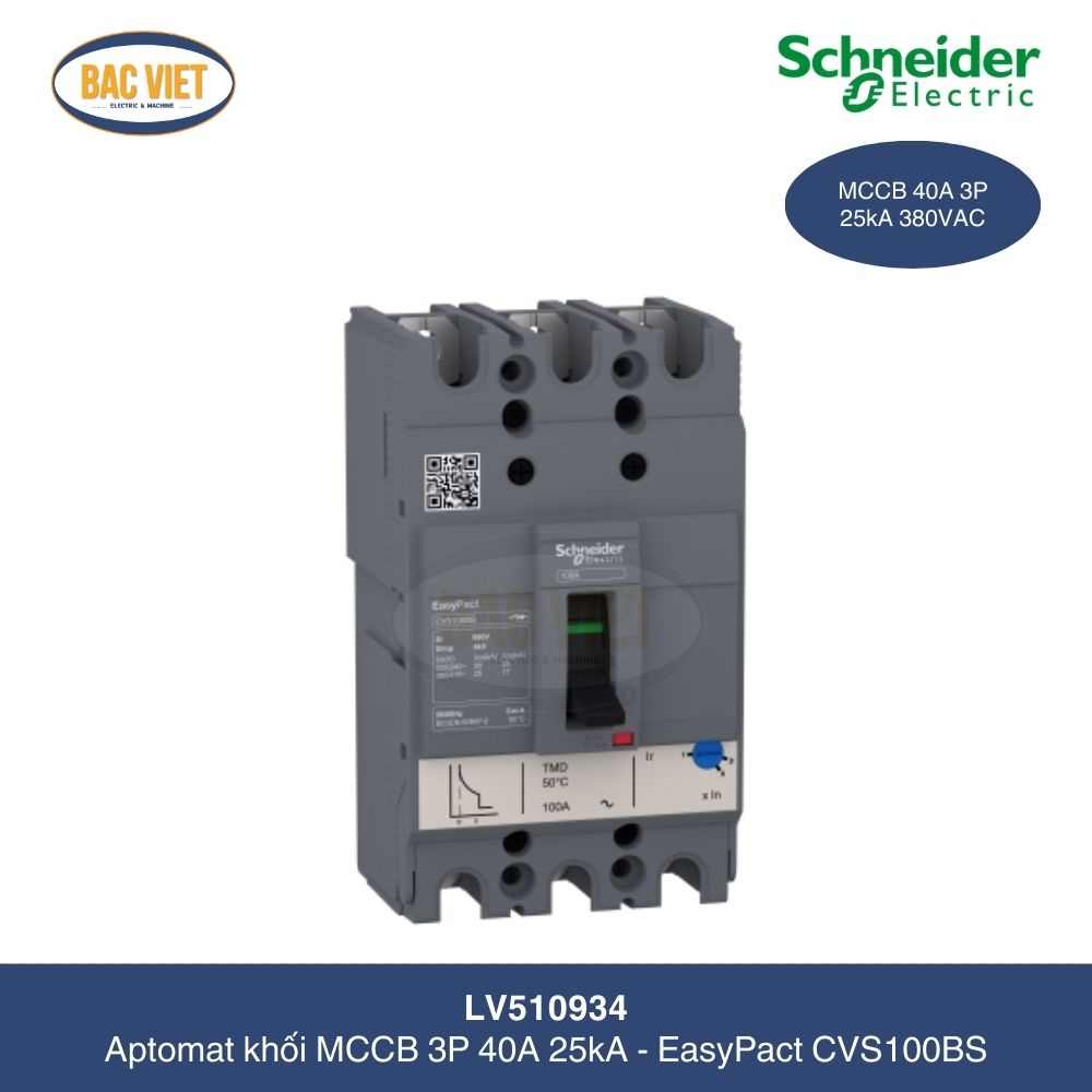 Aptomat MCCB khối EasyPact CVS 3P 40A 25kA LV510934 Schneider là thiết bị thuộc thương hiệu Schneider dùng để bảo vệ mạch điện khỏi các sự cố như quá tải, ngắn mạch hoặc rò điện. Cùng Cơ điện Bắc Việt chúng tớ tìm hiểu về dòng Cầu dao tự động dạng khối này nhé!